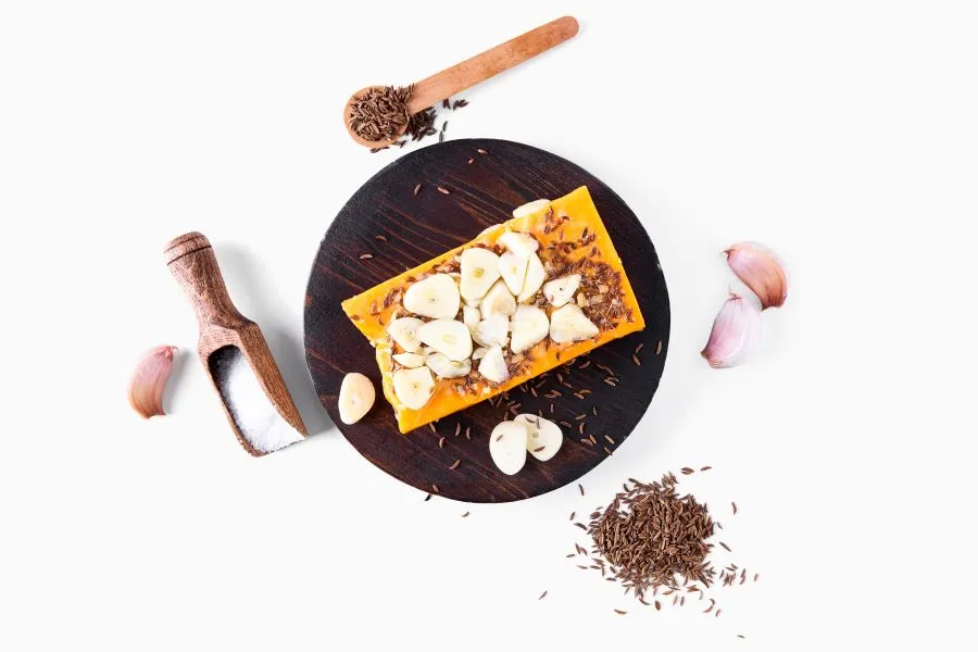 Wędzony Cheddar z czosnkiem i kminkiem, 130g